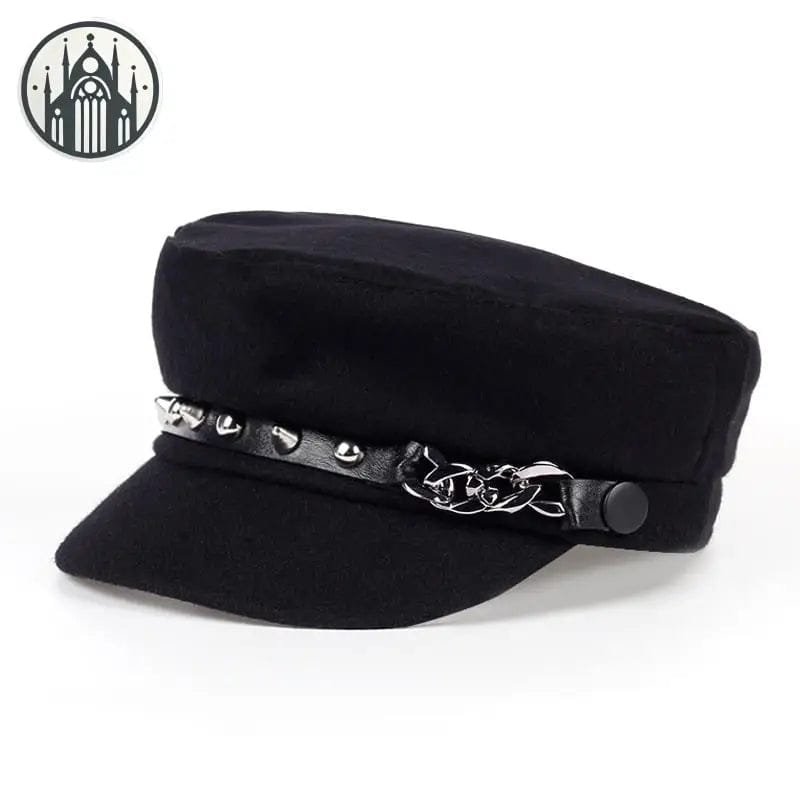 Ajoutez une touche gothique à votre style avec la casquette gothique à rivets et chaînes!