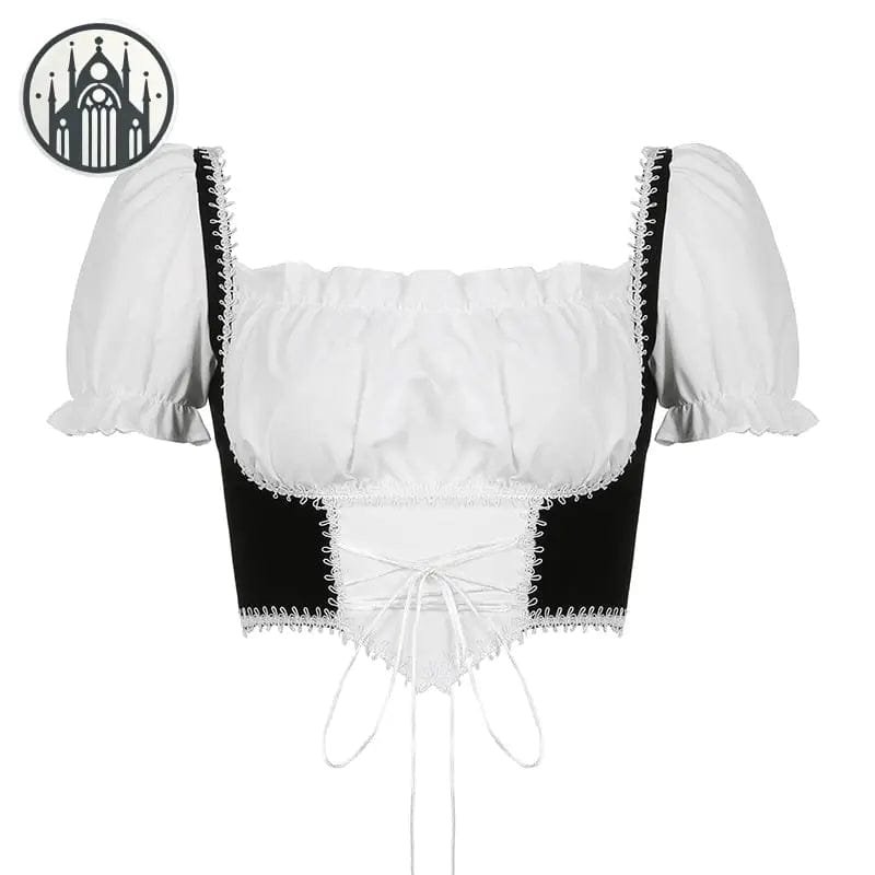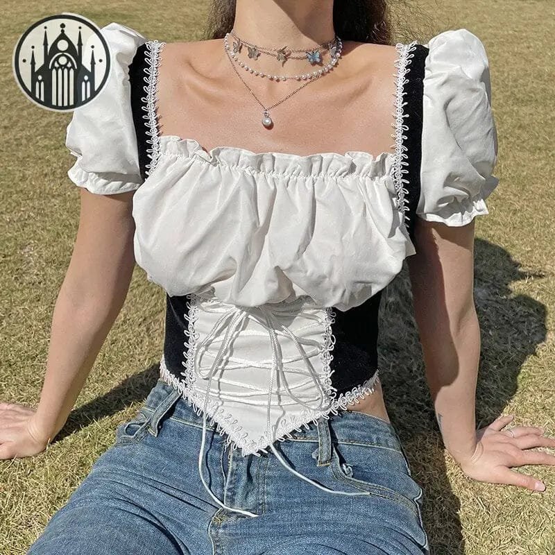 Ce top audacieux est un mélange parfait de romantisme et de modernité. Les manches courtes et bouffantes ajoutent une touche de féminité, tandis que l’encolure carrée avec des détails ruchés apporte une allure sophistiquée.