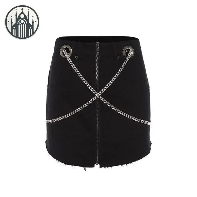 Cette mini-jupe emo est un must-have pour les fashionistas rebelles. Avec ses chaînes et anneaux en métal à l’ourlet, elle ajoute une touche de rock à n’importe quelle tenue.