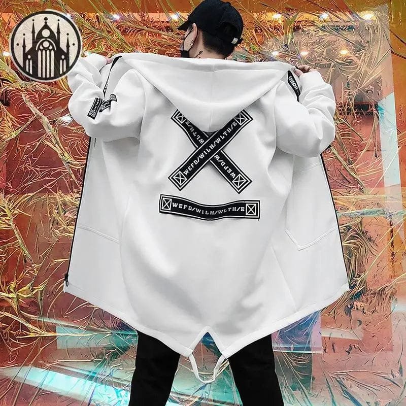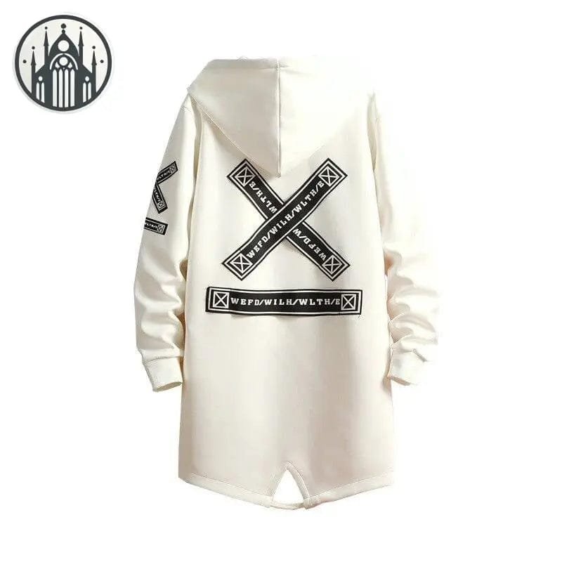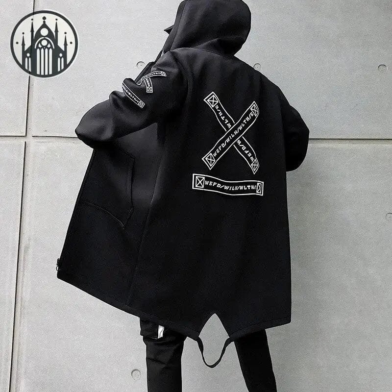 – Matière imperméable qui te garde au sec par tous les temps. – Cordon de serrage à la capuche pour un ajustement personnalisé et stylé. – Poche à rabat au ventre pratique pour transporter tes essentiels en toute sécurité. – Motif écriture X dans le dos pour une touche rebelle et originale. Si tu es tombé sous le charme de ce manteau, tu seras complètement obsédé par notre [Manteau Gothique à Laçage sur les Manches](/collections/manteau-gothique-homme/products/manteau-gothique-lacage-sur-les-manches) conçu pour te donner un look absolument diabolique. Découvre notre vaste sélection de [manteaux gothiques pour homme](/collections/manteau-gothique-homme) conçus pour les passionnés de moto à la recherche d’un style unique et audacieux. Complète ton look avec notre gamme de [vêtements gothiques pour homme](/collections/vetements-gothiques-homme) et affiche un style époustouflant à chaque balade. Opte pour le look badass que tu mérites avec notre collection de manteaux et vêtements gothiques pour homme pour te démarquer de la masse et affirmer ta singularité.
