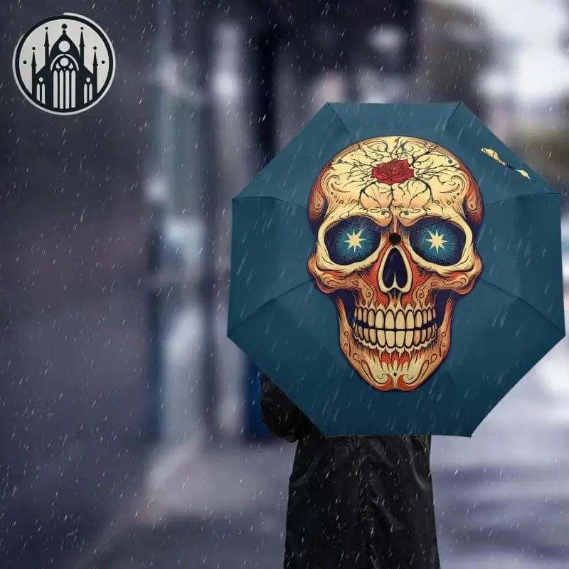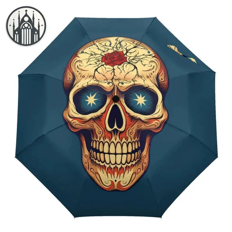 Parapluie Gothique “Tête de Mort Rieur” – Accessoire Original et Macabre