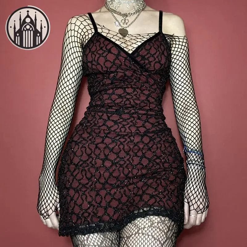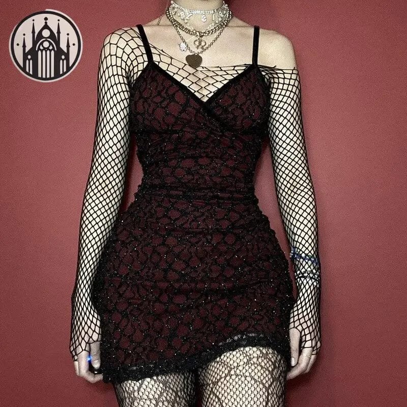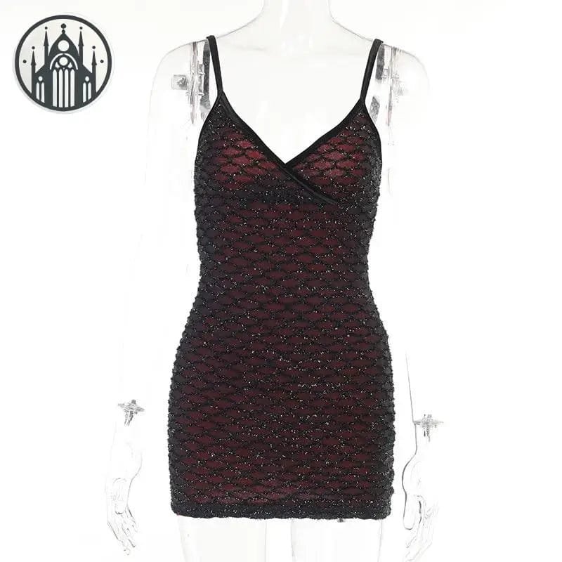 Cette mini robe gothique bordeaux est un incontournable pour toutes les fashionistas audacieuses ! Avec sa coupe extensible sans manches, sa superposition de mailles scintillantes et ses bretelles réglables, cette pièce est un véritable chef-d’œuvre de la mode gothique.