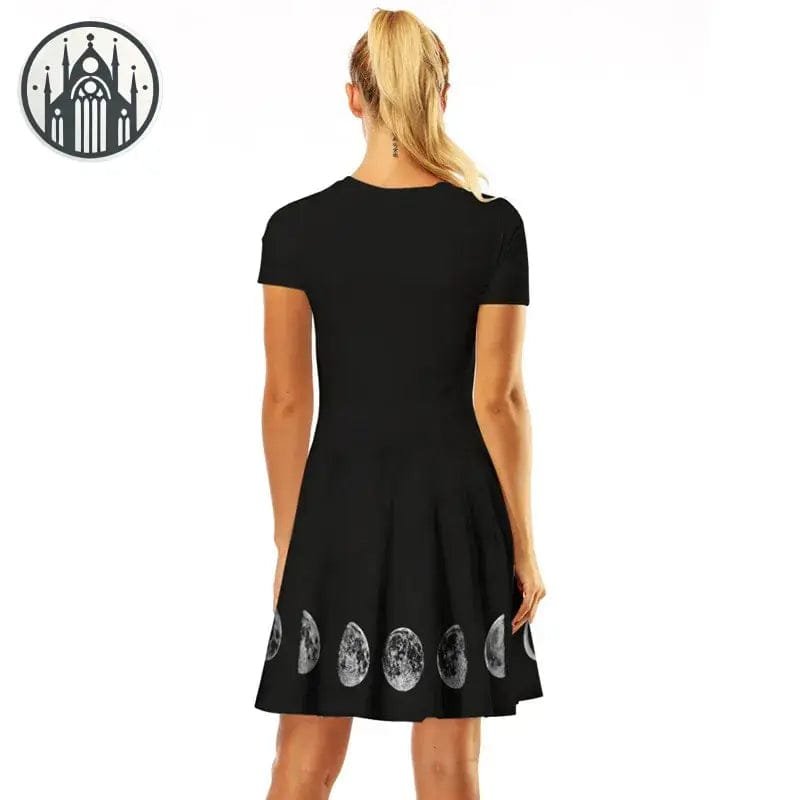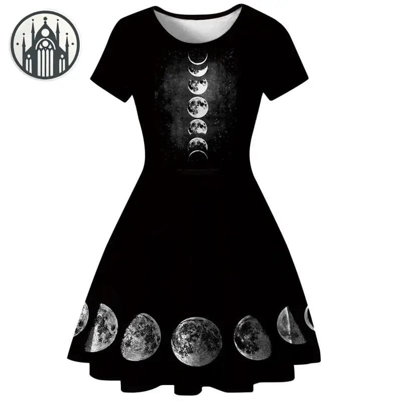 Plongez dans l’obscurité mystique avec notre robe gothique trapèze à impression phase lunaire. Cette pièce exquise combine le charme classique du style gothique avec une touche contemporaine inspirée de la nature. Confectionnée dans un tissu léger et fluide, cette robe épouse délicatement les courbes tout en offrant une liberté de mouvement. L’impression phase lunaire ajoute une dimension envoûtante à l’ensemble, capturant l’énergie mystique de la nuit. Parfaite pour les soirées élégantes, les événements spéciaux ou simplement pour exprimer votre style unique au quotidien.