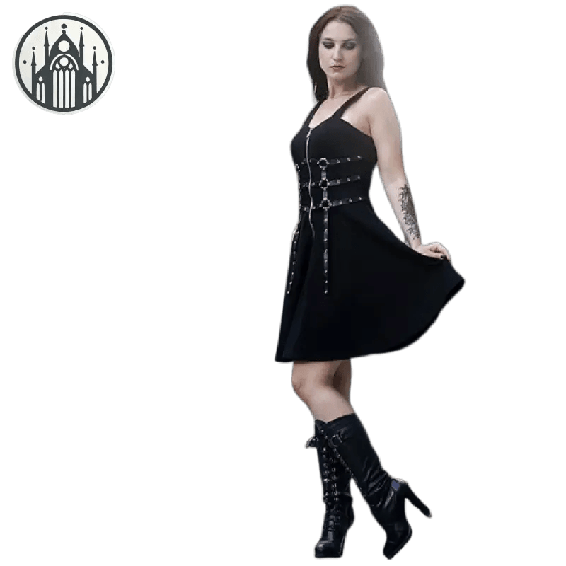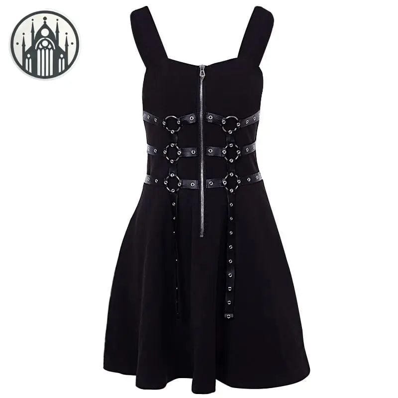 La ravissante robe gothique Harajuku “Midnight Muse” avec un détail en œillet web et une fermeture à glissière noire est l’incarnation parfaite de l’obscurité élégante. Sans manches et dos nu, cette pièce captivante ajoutera une touche de mystère à votre garde-robe.