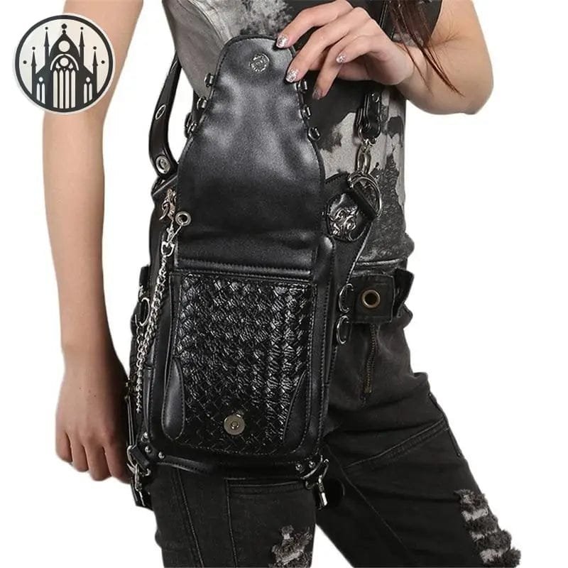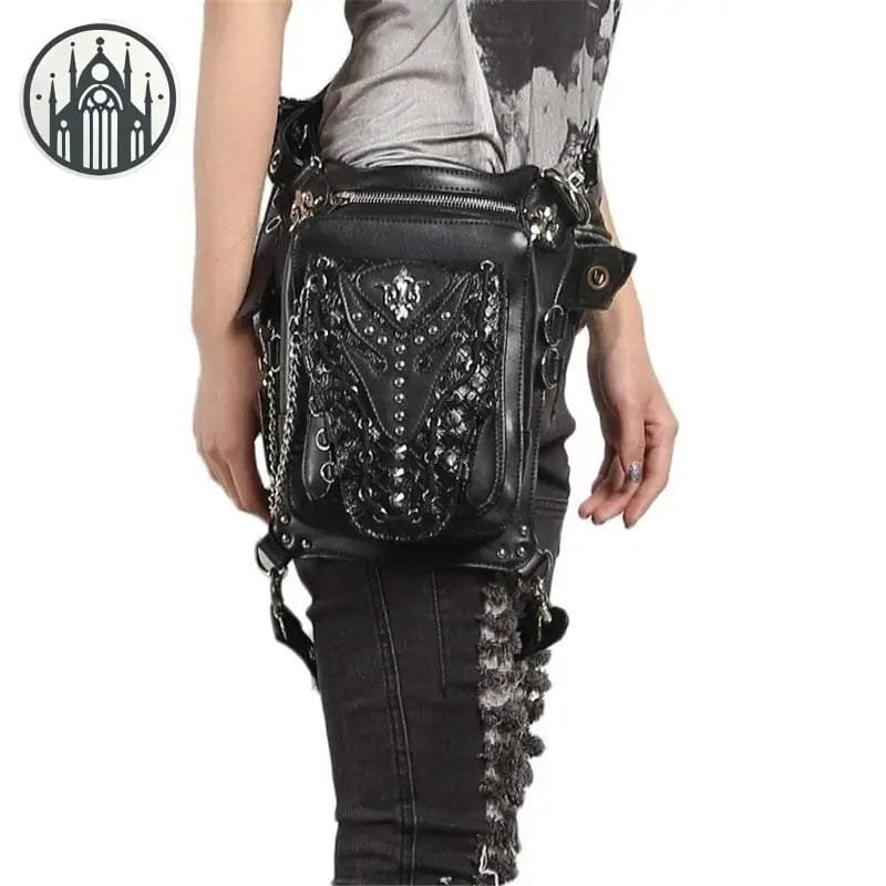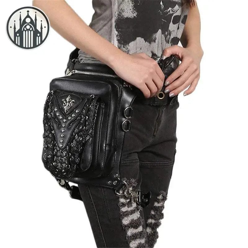 Cette sacoche gothique à Rivets convient aux jeunes avec personnalité. Vous pouvez le porter sur les hanches ou sur l’épaule comme un sac ordinaire, ou même sur le dos comme un petit sac à dos !