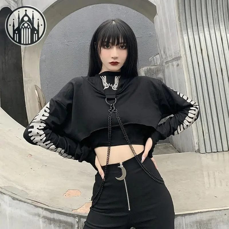 Ah, le style gothique – sombre, mystérieux, et toujours envoûtant. Avec notre sweat à capuche gothique réfléchissant à chaîne, vous pouvez embrasser pleinement cette esthétique unique. Parce que oui, c’est tout ce que nous sommes, n’est-ce pas, bébé ? Faites savoir au monde que vous ne rigolez pas avec ce sweat à capuche, taillé court, orné de graphiques de squelettes réfléchissants, et de chaines hardcore !
