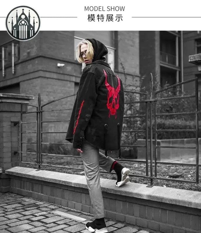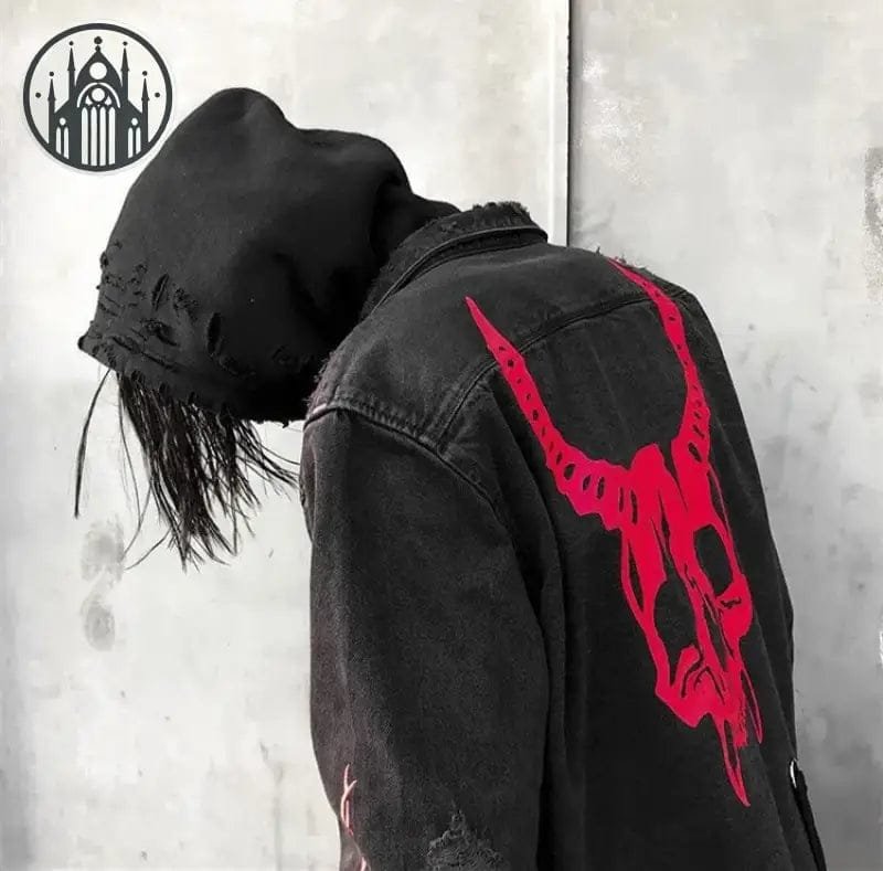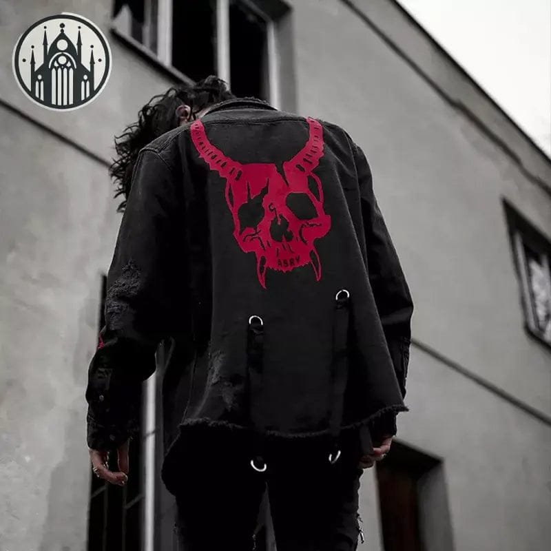 La veste gothique Heavy Metal avec impression de crâne démon